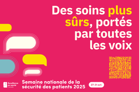 Cette année, la Semaine nationale de la sécurité des patients se déroulera du 27 au 31 octobre 2025. Cette initiative pancanadienne par Excellence en santé Canada (ESC) vise à promouvoir la prestation sécuritaire de soins et services aux usagers. Cette nouvelle édition sous le thème « Des soins plus sûrs, portés par toutes les voix » nous invite à écouter plus attentivement, à laisser chaque voix s’exprimer et à prendre des mesures concrètes, ensemble, pour rendre les soins et services de santé plus sûrs.