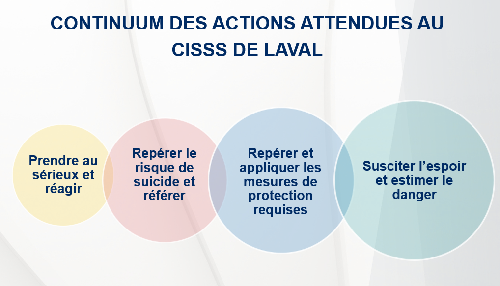 Techniciens, professionnels et intervenants psychosociaux ou infirmières santé mentale dont la responsabilité est de faire une intervention complète (estimer de la dangerosité, susciter l’espoir en plus d’assurer la sécurité) en prévention du suicide.