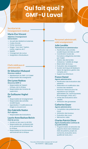 https://www.fmrq.qc.ca/conditions-travail/entente-collective), le résident coordo de votre GMF-U, le DLP, la technicienne admin de votre GMF-U.