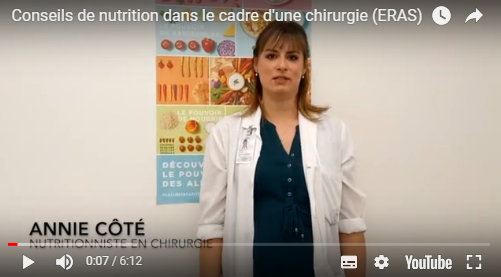 Regardez la vidéo pour obtenir des conseils de nutrition dans le cadre d'une chirurgie.